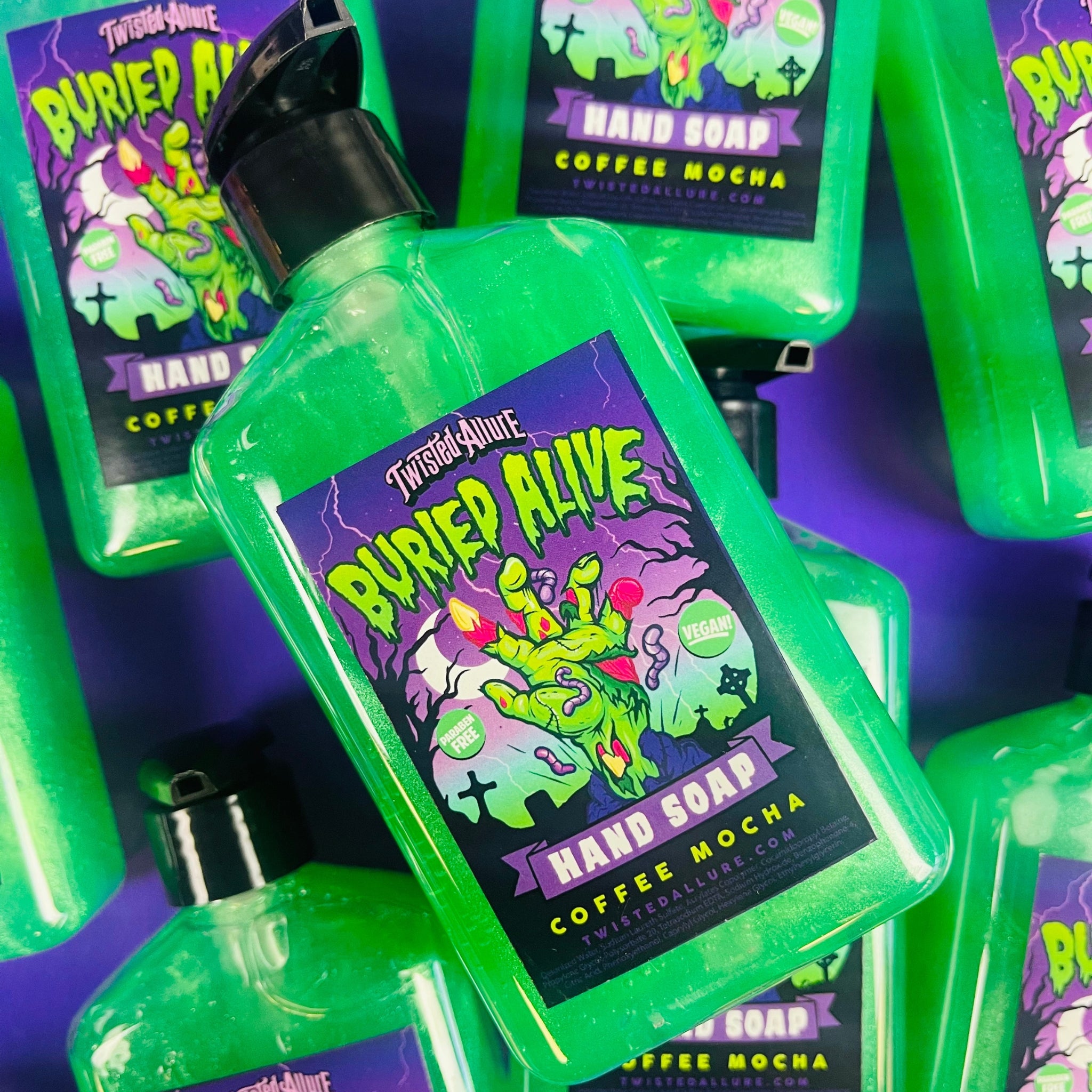 Green lather brewed with rich espresso and sticky caramel—haunted by a zombie’s last grasp for one more wash.