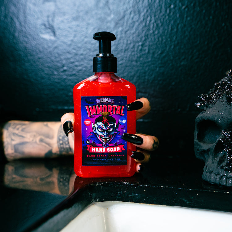 Dark cherry decadence with a sinister twist—rich, juicy, and hauntingly smooth. One wash and you're practically undead royalty.